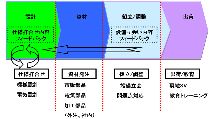 弊社では設(shè)備設(shè)計から資材発注、組立?調(diào)整?出荷まですべて対応しております。